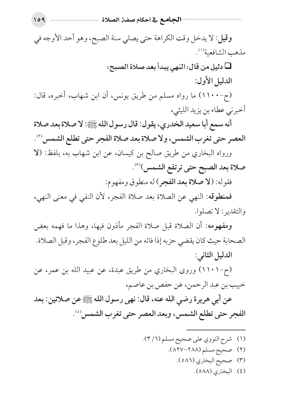 عن أبي هريرة رضي الله عنه، قال: نهى رسول الله صلى الله عليه وسلم عن صلاتين: بعد الفجر حتى تطلع الشمس، وبعد العصر حتى تغرب الشمس (¬٤).