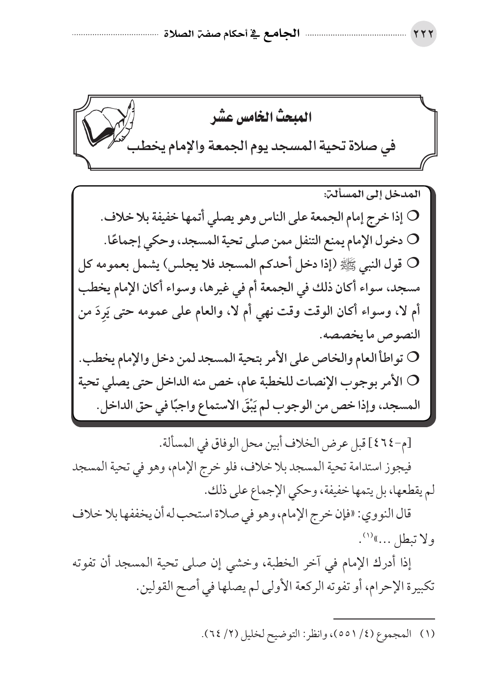 المبحث الخامس عشر في صلاة تحية المسجد يوم الجمعة والإمام يخطب