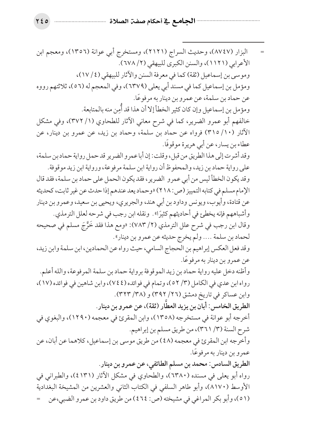 وقد أشرت إلى هذا الطريق من قبل، وقلت: إن أبا عمرو الضرير قد حمل رواية حماد بن سلمة، على رواية حماد بن زيد، والمحفوظ أن رواية ابن سلمة مرفوعة، ورواية ابن زيد موقوفة.