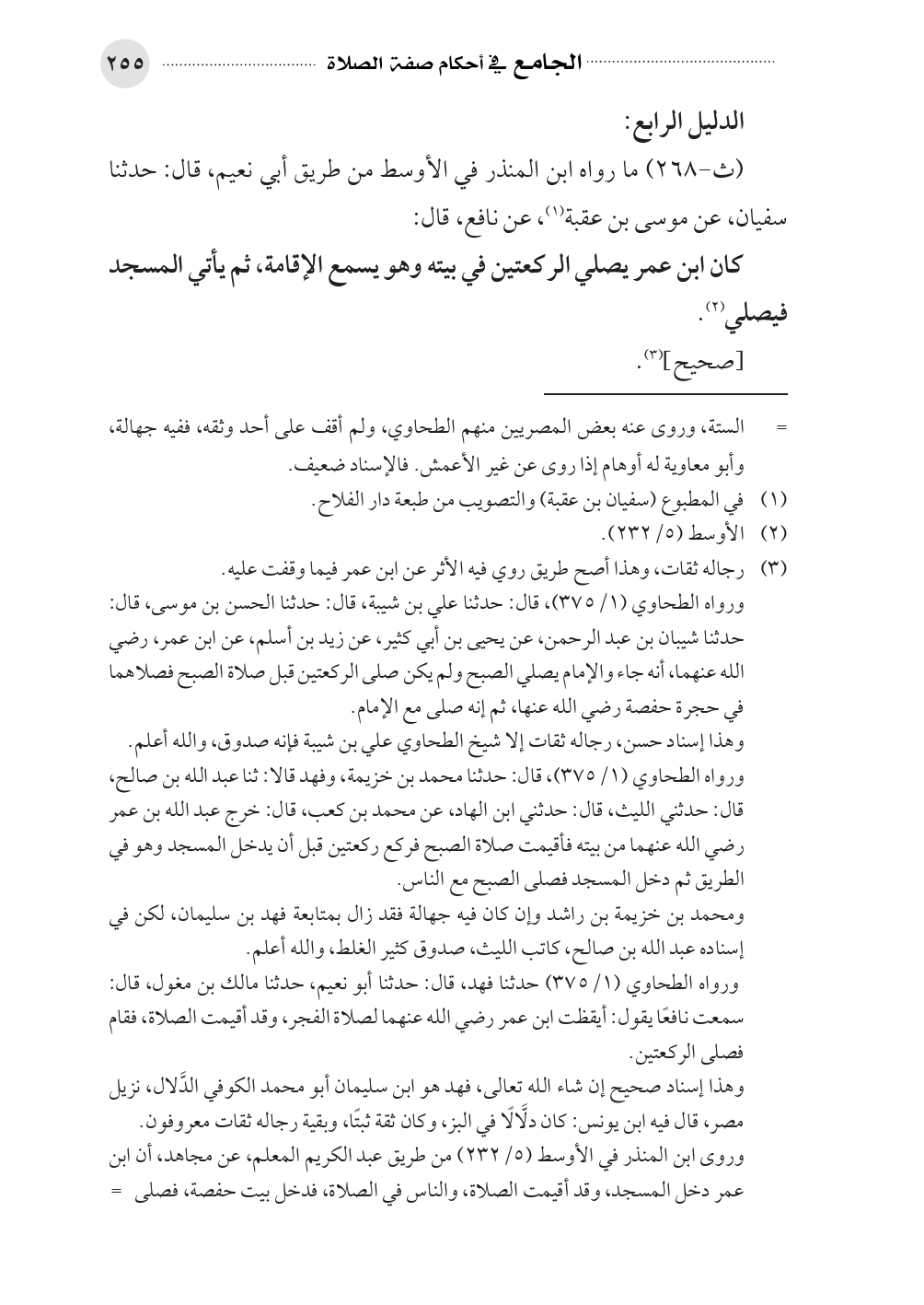 (ث-٢٦٨) ما رواه ابن المنذر في الأوسط من طريق أبي نعيم، قال: حدثنا سفيان، عن موسى بن عقبة (¬١)، عن نافع، قال: