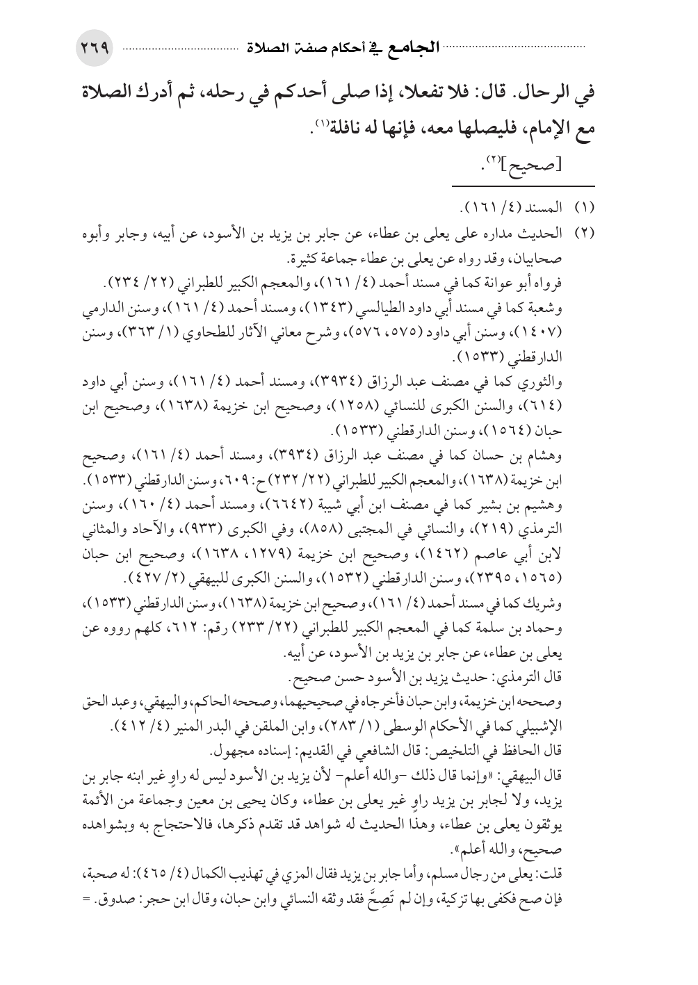 (¬٢). الحديث مداره على يعلى بن عطاء، عن جابر بن يزيد بن الأسود، عن أبيه، وجابر وأبوه صحابيان، وقد رواه عن يعلى بن عطاء جماعة كثيرة.
