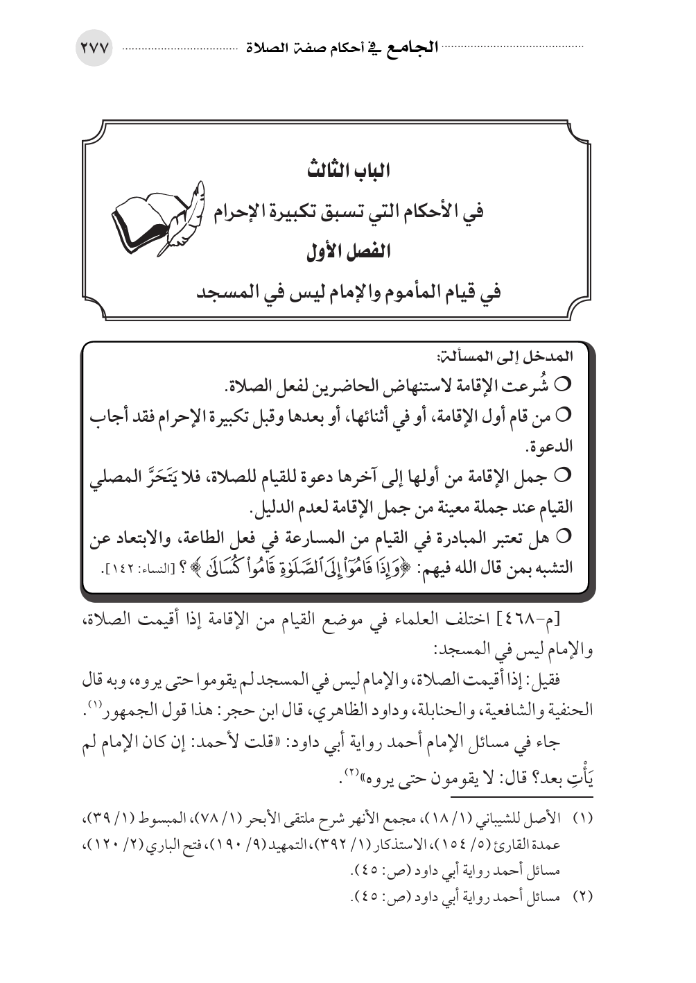 الباب الثالث في الأحكام التي تسبق تكبيرة الإحرام