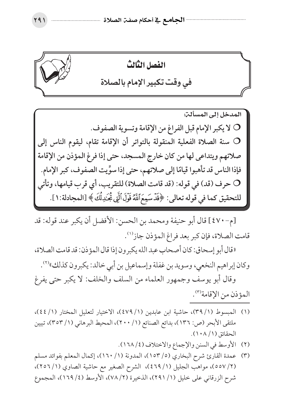 الفصل الثالث في وقت تكبير الإمام بالصلاة