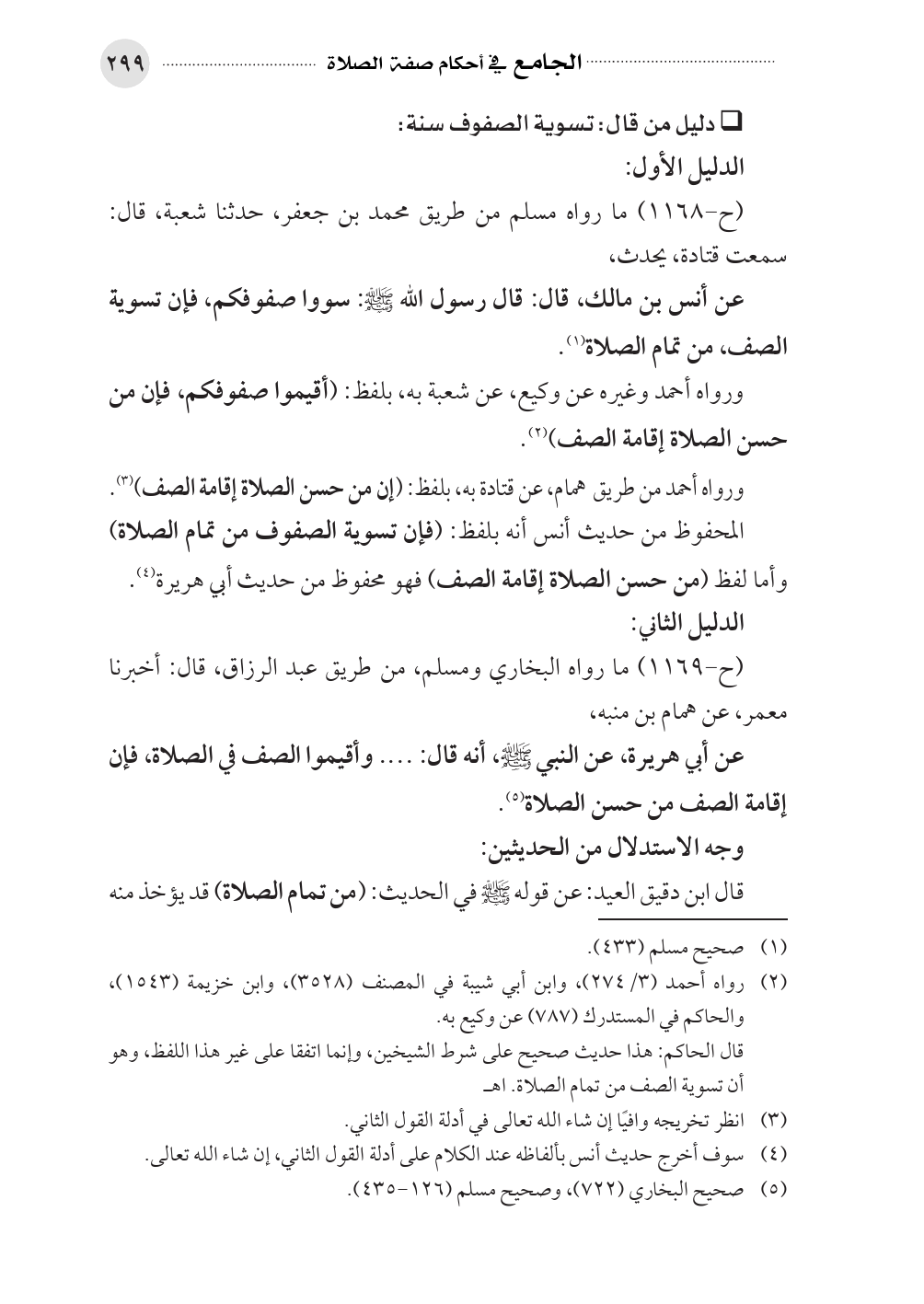 عن أبي هريرة، عن النبي صلى الله عليه وسلم، أنه قال: .... وأقيموا الصف في الصلاة، فإن إقامة الصف من حسن الصلاة (¬٥).