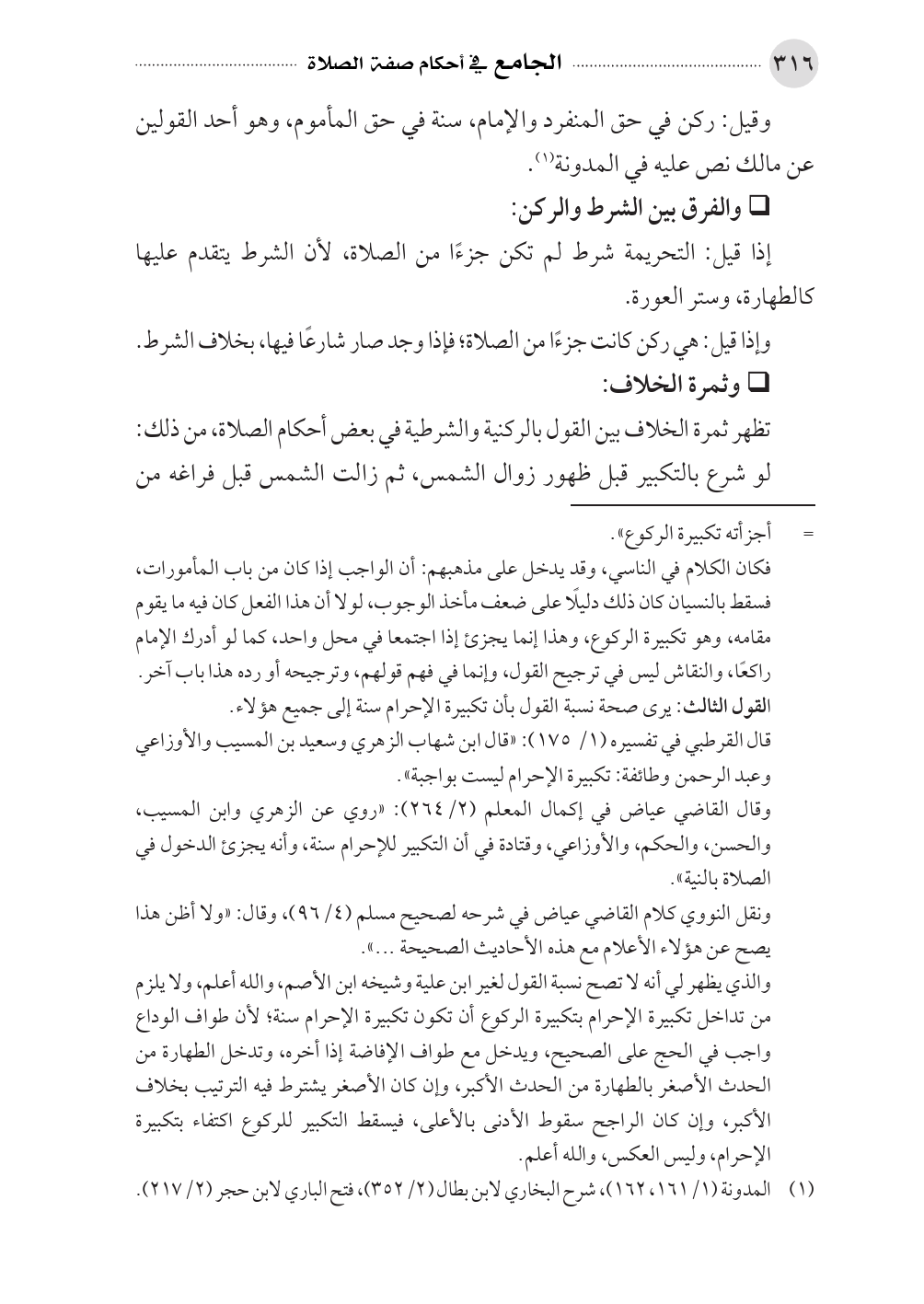 (¬١). المدونة (١/ ١٦١، ١٦٢)، شرح البخاري لابن بطال (٢/ ٣٥٢)، فتح الباري لابن حجر (٢/ ٢١٧).