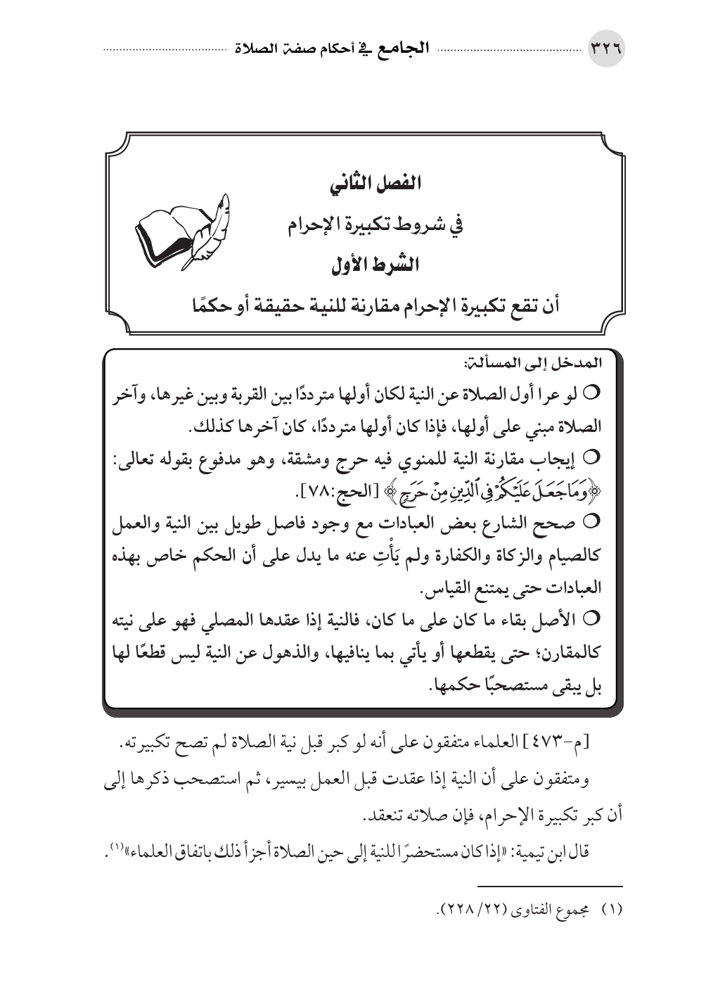 الفصل الثاني في شروط تكبيرة الإحرام
