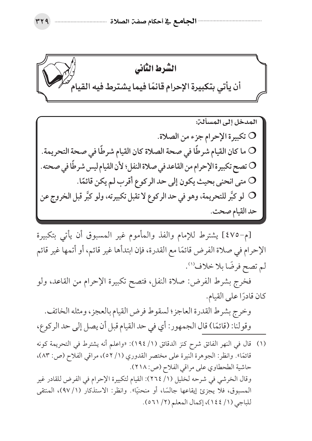 • ما كان القيام شرطًا في صحة الصلاة كان القيام شرطًا في صحة التحريمة.