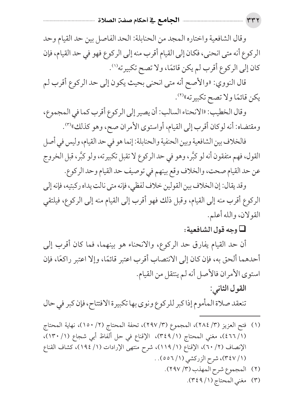 وقال الخطيب: «الانحناء السالب: أن يصير إلى الركوع أقرب كما في المجموع، ومقتضاه: أنه لوكان أقرب إلى القيام، أو استوى الأمران صح، وهو كذلك» (¬٣).