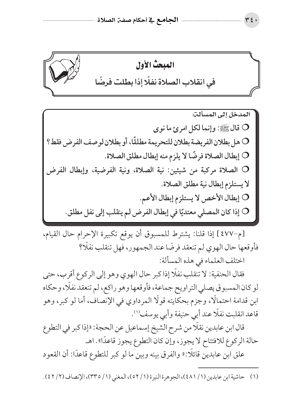 المبحث الأول في انقلاب الصلاة نفلَا إذا بطلت فرضًا