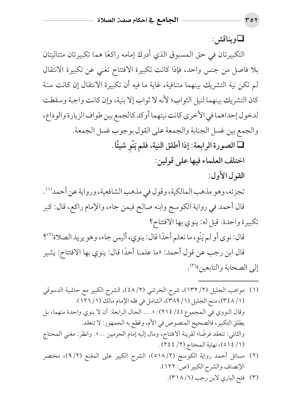 قال ابن رجب عن قول أحمد: «ما علمنا أحدًا قال: ينوي بها الافتتاح: يشير إلى الصحابة والتابعين» (¬٣).