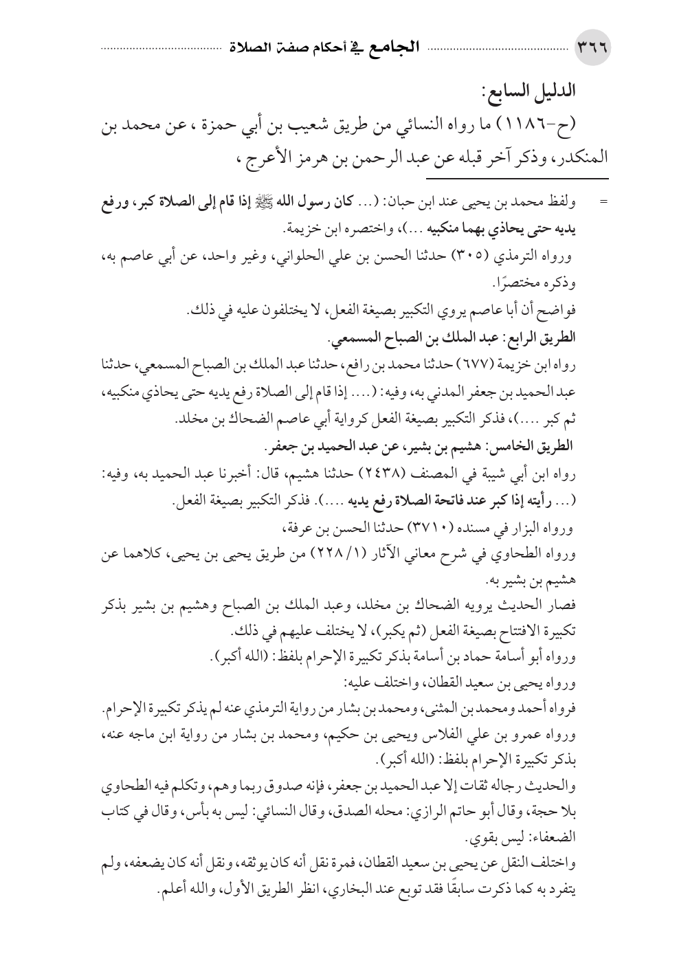 فصار الحديث يرويه الضحاك بن مخلد، وعبد الملك بن الصباح وهشيم بن بشير بذكر تكبيرة الافتتاح بصيغة الفعل (ثم يكبر)، لا يختلف عليهم في ذلك.