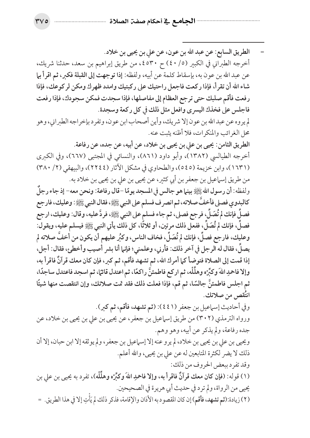 ورواه الترمذي (٣٠٢) من طريق إسماعيل بن جعفر، عن يحيى بن علي بن يحيى بن خلاد، عن جده رفاعة، ولم يذكر عن أبيه، وهو وهم. ...