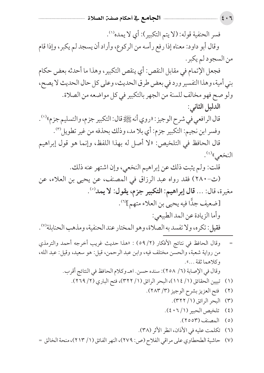 وفسر ابن نجيم: التكبير جزم: أي بلا مد، وذلك بحذفه من غير تطويل (¬٣).