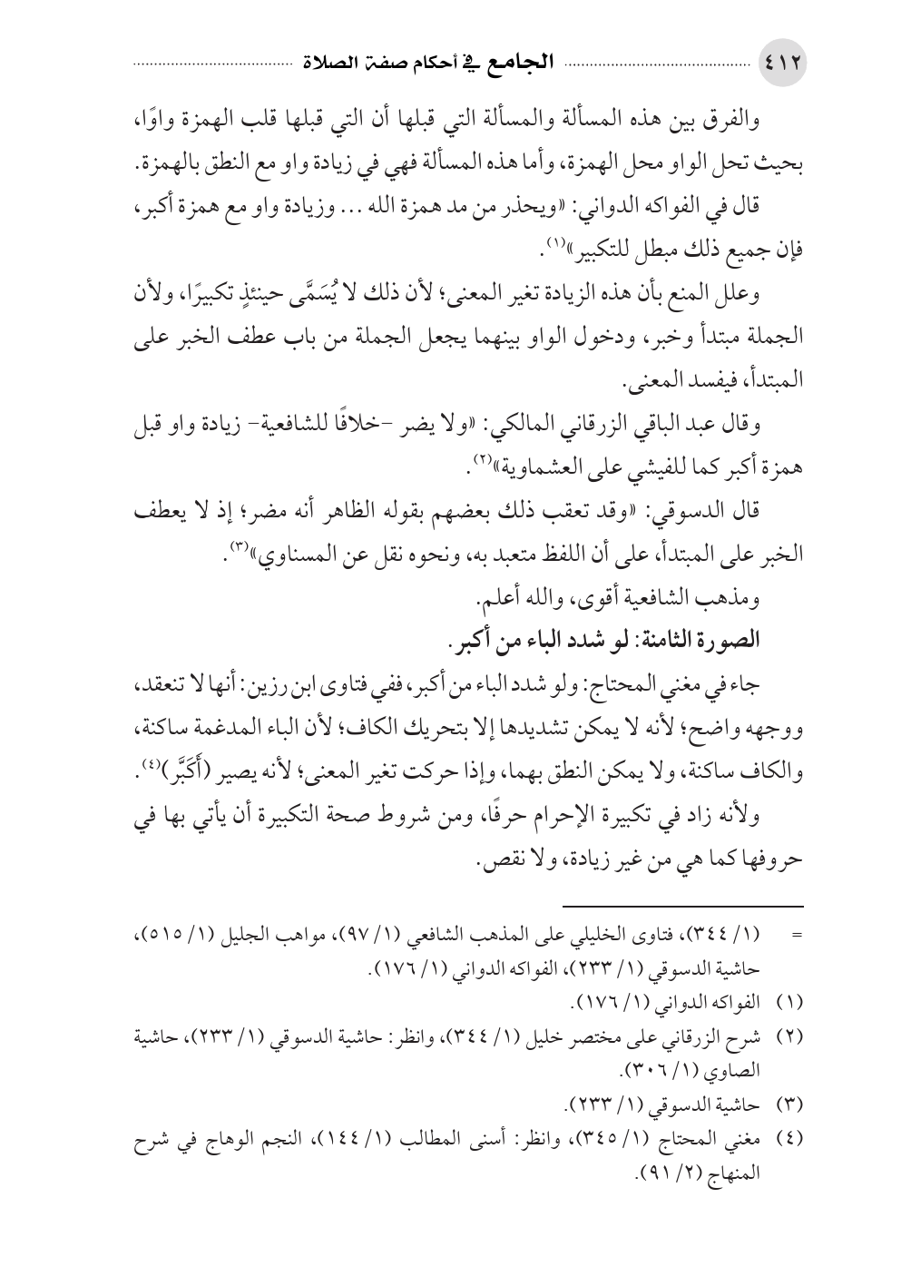 وقال عبد الباقي الزرقاني المالكي: «ولا يضر -خلافًا للشافعية- زيادة واو قبل همزة أكبر كما للفيشي على العشماوية» (¬٢).