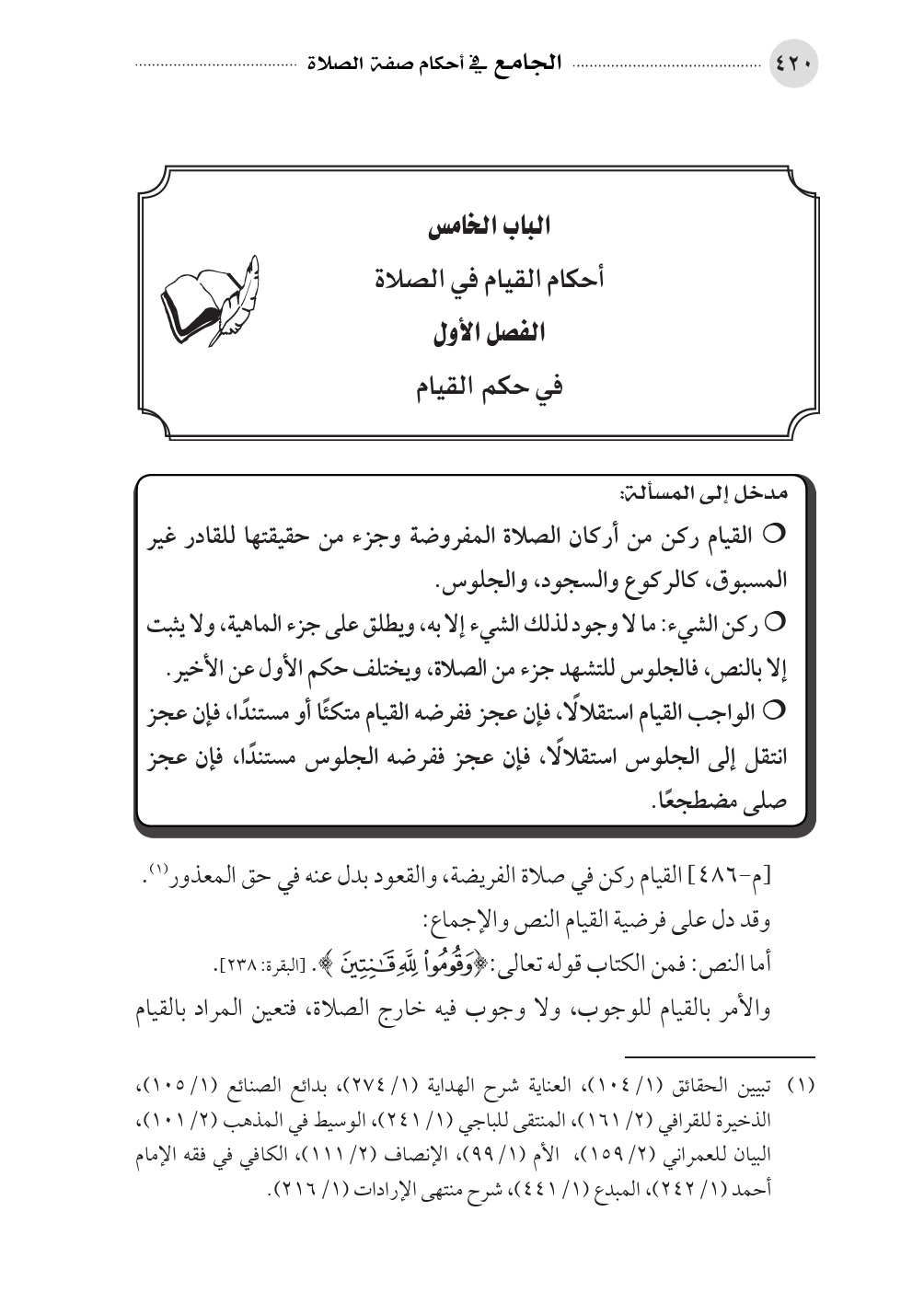 الباب الخامس أحكام القيام في الصلاة