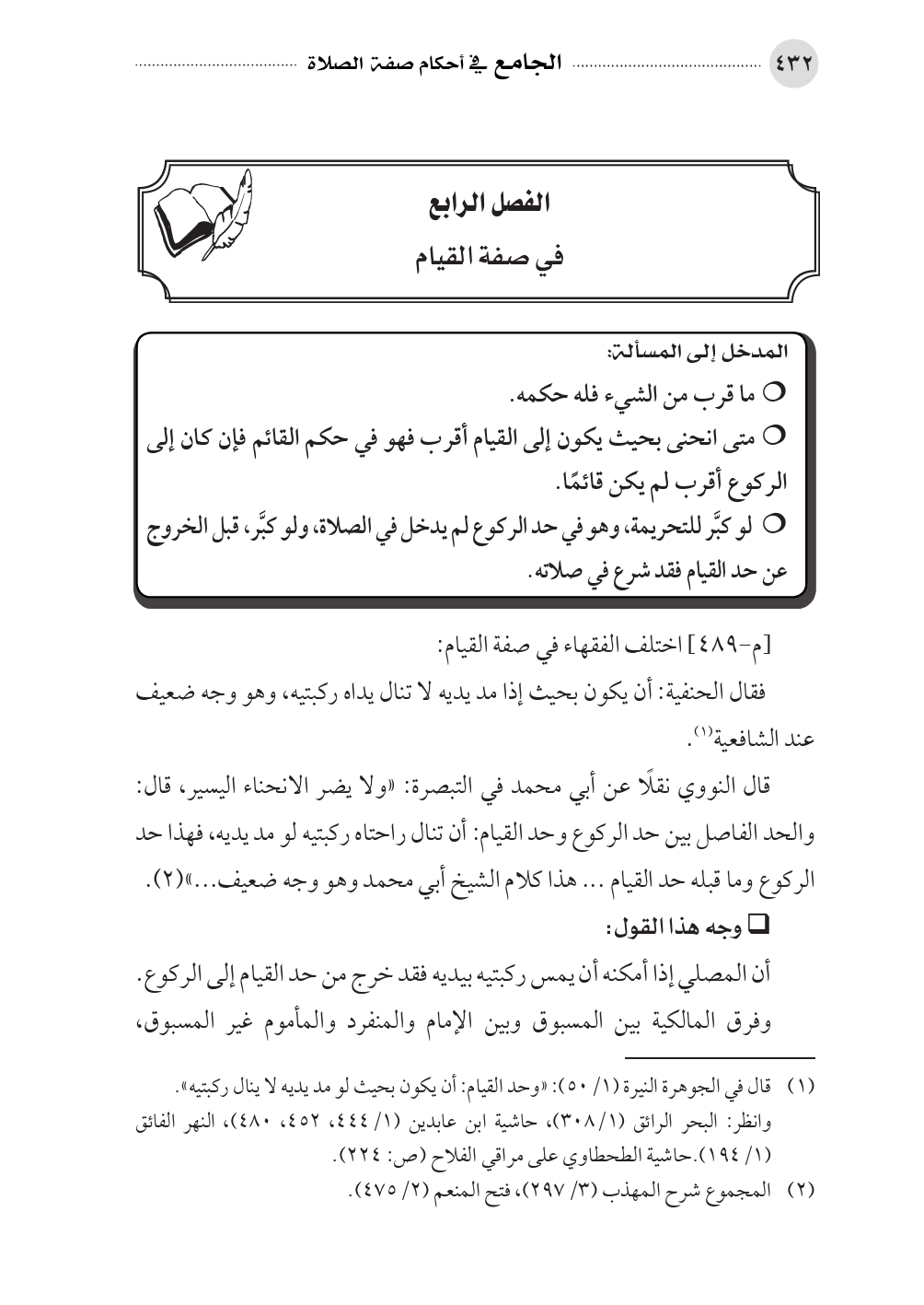 الفصل الرابع في صفة القيام