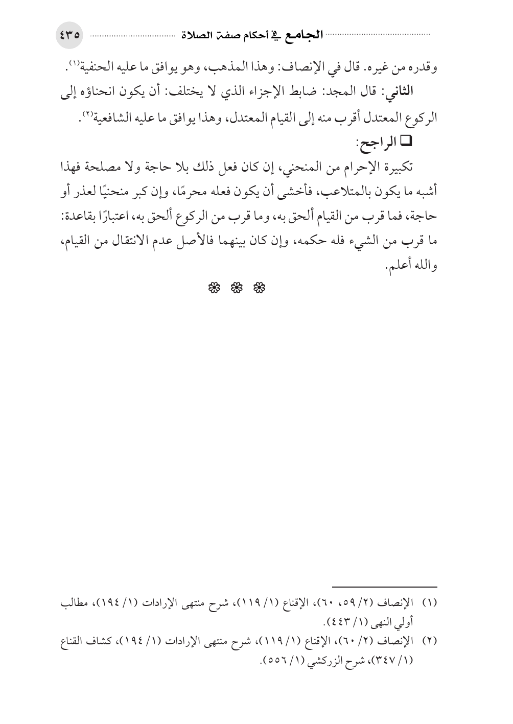 الثاني: قال المجد: ضابط الإجزاء الذي لا يختلف: أن يكون انحناؤه إلى الركوع المعتدل أقرب منه إلى القيام المعتدل، وهذا يوافق ما عليه الشافعية (¬٢).