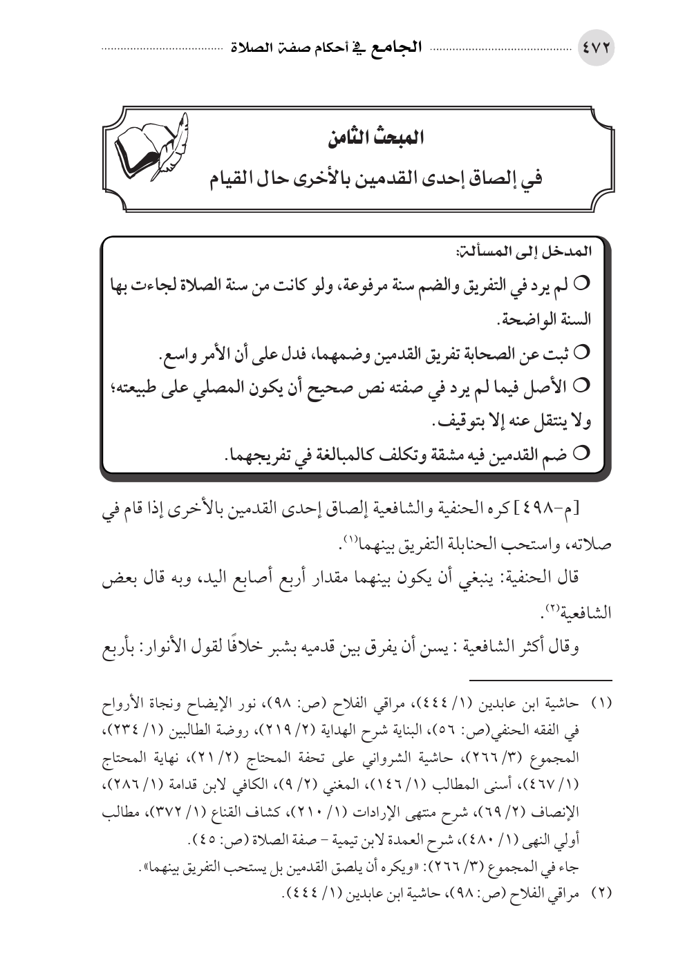 المبحث الثامن في الصاق إحدى القدمين بالأخرى حال القيام