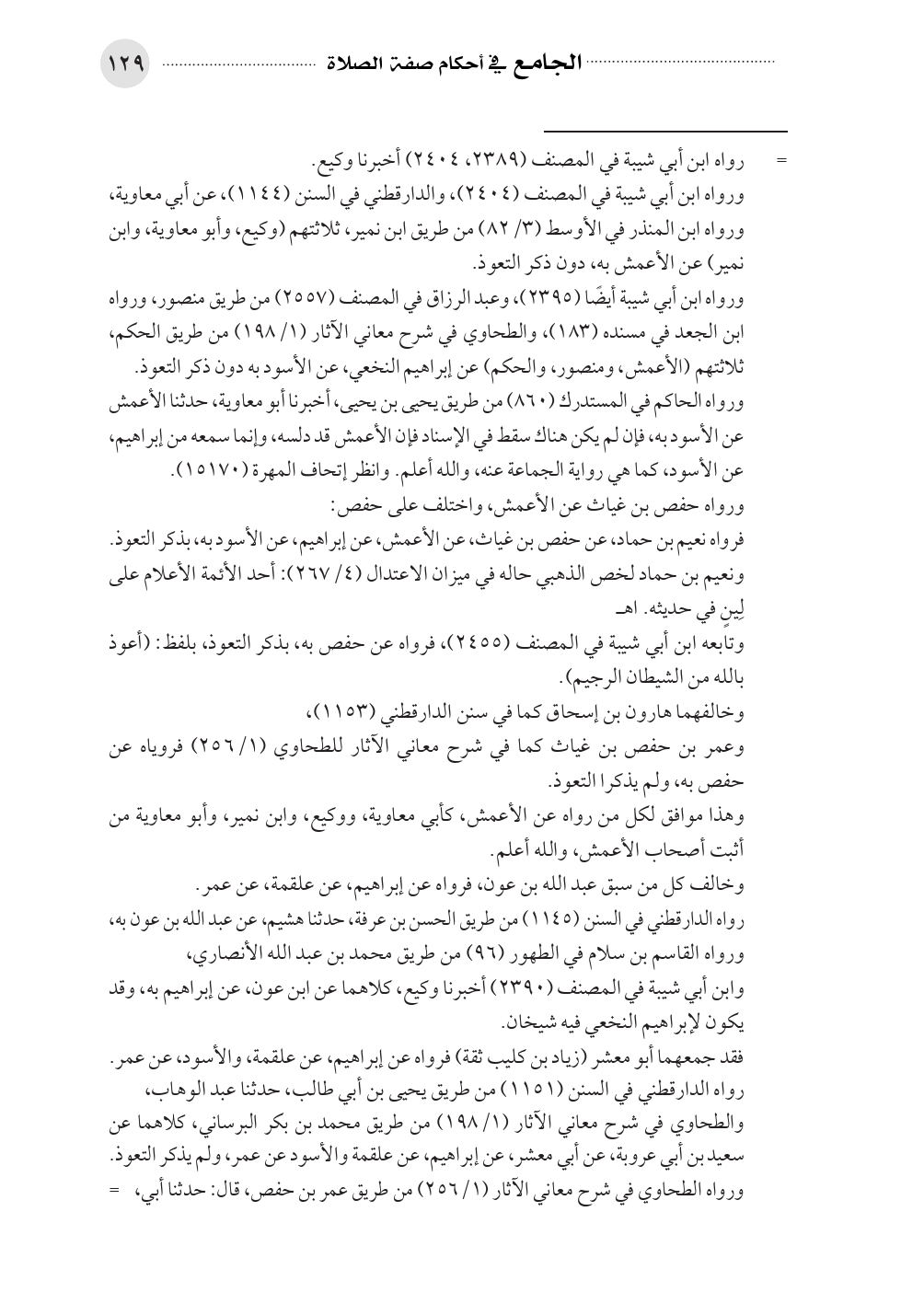 ورواه ابن أبي شيبة في المصنف (٢٤٠٤)، والدارقطني في السنن (١١٤٤)، عن أبي معاوية،