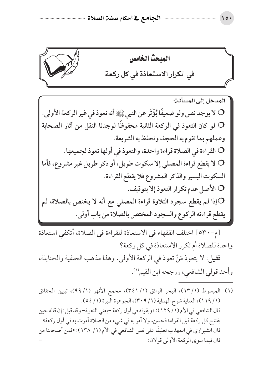 المبحث الخامس في تكرار الاستعاذة في كل ركعة