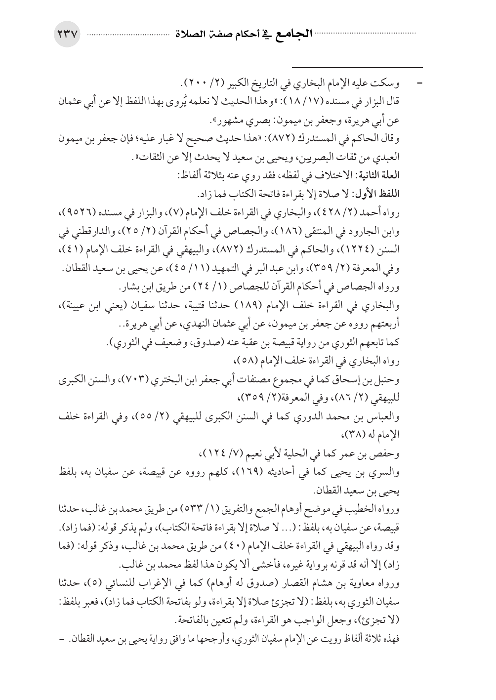 رواه أحمد (٢/ ٤٢٨)، والبخاري في القراءة خلف الإمام (٧)، والبزار في مسنده (٩٥٢٦)، وابن الجارود في المنتقى (١٨٦)، والجصاص في أحكام القرآن (٢/ ٢٥)، والدارقطني في السنن (١٢٢٤)، والحاكم في المستدرك (٨٧٢)، والبيهقي في القراءة خلف الإمام (٤١)، وفي المعرفة (٢/ ٣٥٩)، وابن عبد البر في التمهيد (١١/ ٤٥)، عن يحيى بن سعيد القطان.