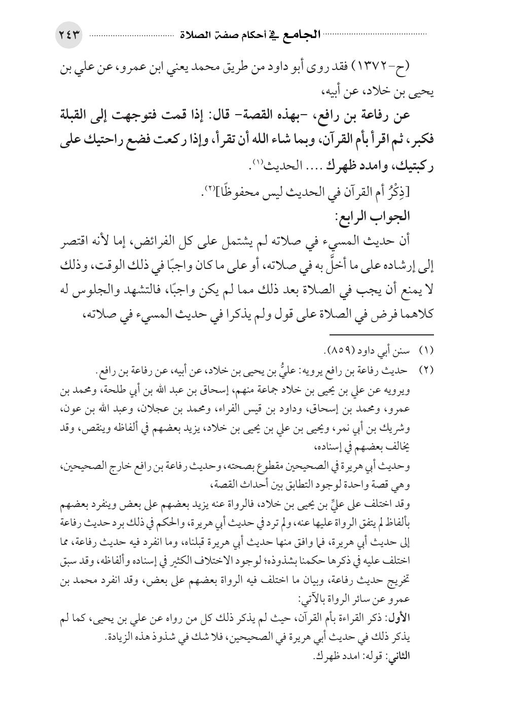 (¬٢). حديث رفاعة بن رافع يرويه: عليُّ بن يحيى بن خلاد، عن أبيه، عن رفاعة بن رافع.