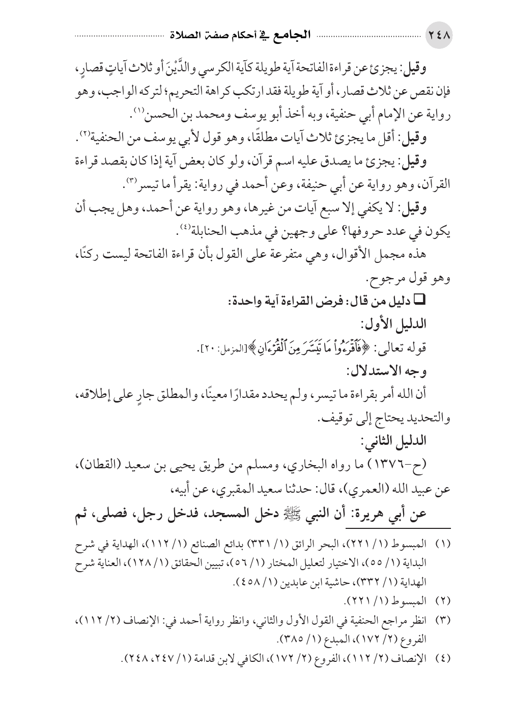 (¬٤). الإنصاف (٢/ ١١٢)، الفروع (٢/ ١٧٢)، الكافي لابن قدامة (١/ ٢٤٧، ٢٤٨).