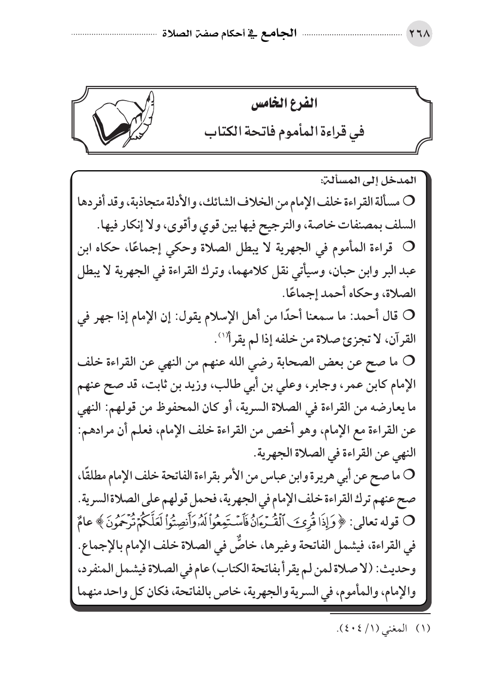 الفرع الخامس في قراءة المأموم فاتحة الكتاب