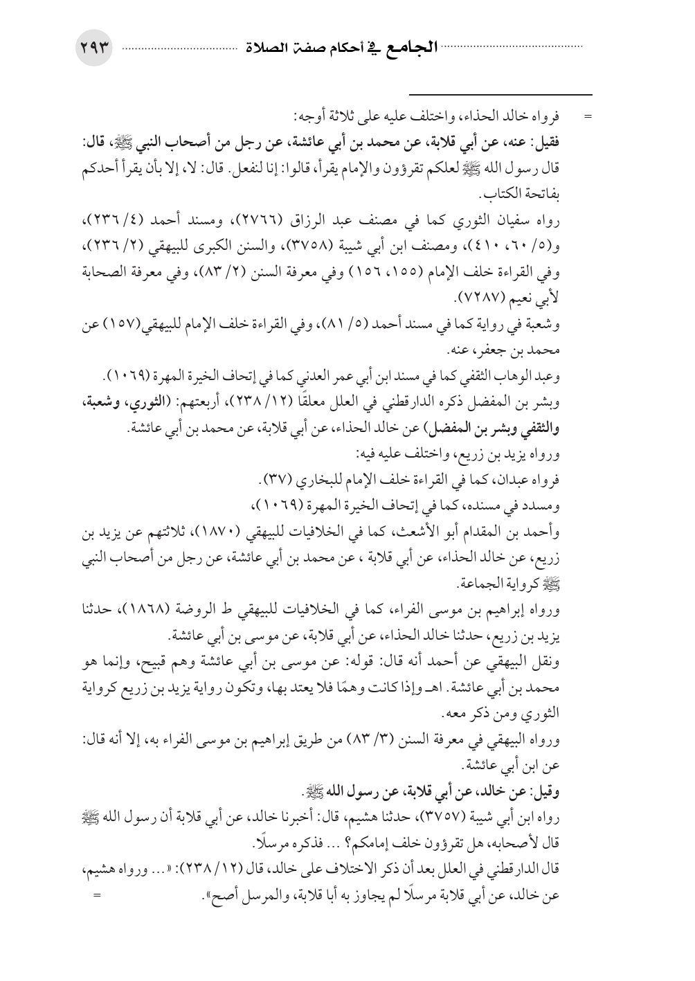 = فرواه خالد الحذاء، واختلف عليه على ثلاثة أوجه: