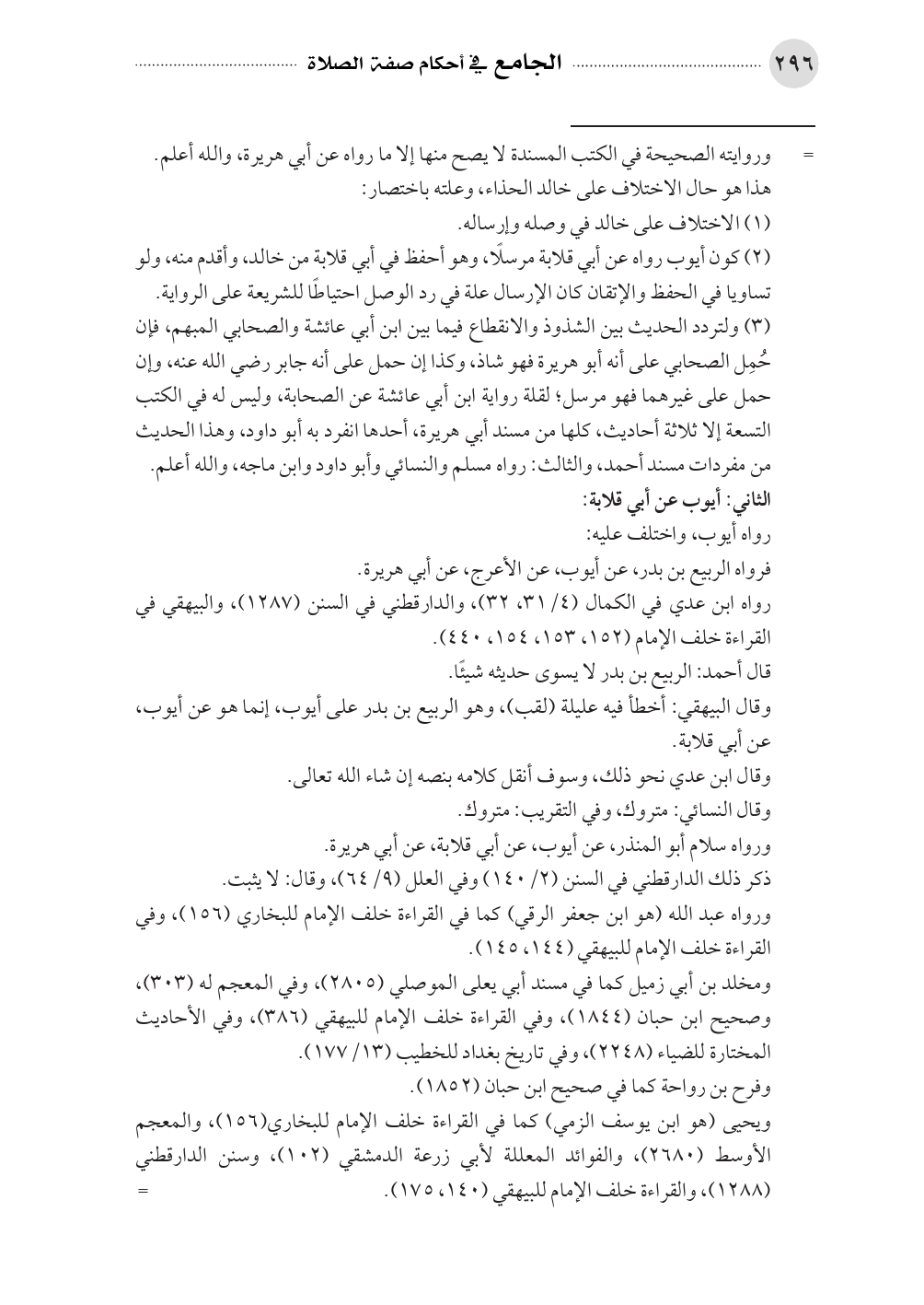 وقال البيهقي: أخطأ فيه عليلة (لقب)، وهو الربيع بن بدر على أيوب، إنما هو عن أيوب، عن أبي قلابة.