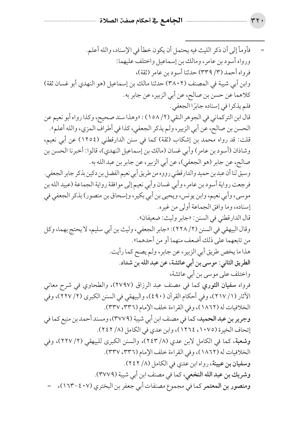 وسبق لنا أن عبد بن حميد والدارقطني رووه من طريق أبي نعيم الفضل بن دكين بذكر جابر الجعفي.