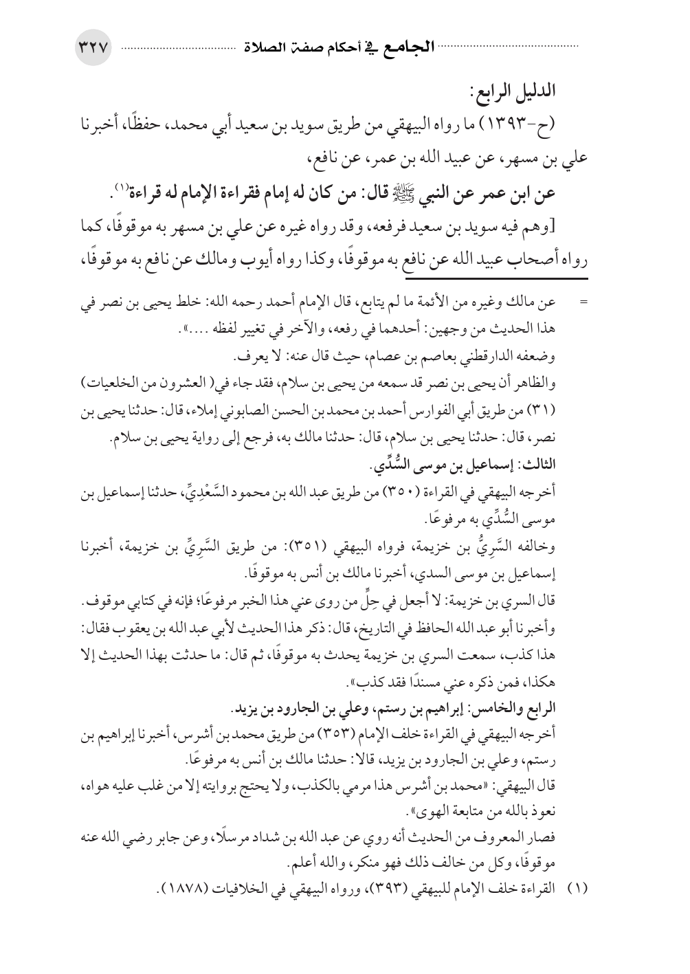 (ح-١٣٩٣) ما رواه البيهقي من طريق سويد بن سعيد أبي محمد، حفظًا، أخبرنا علي بن مسهر، عن عبيد الله بن عمر، عن نافع،