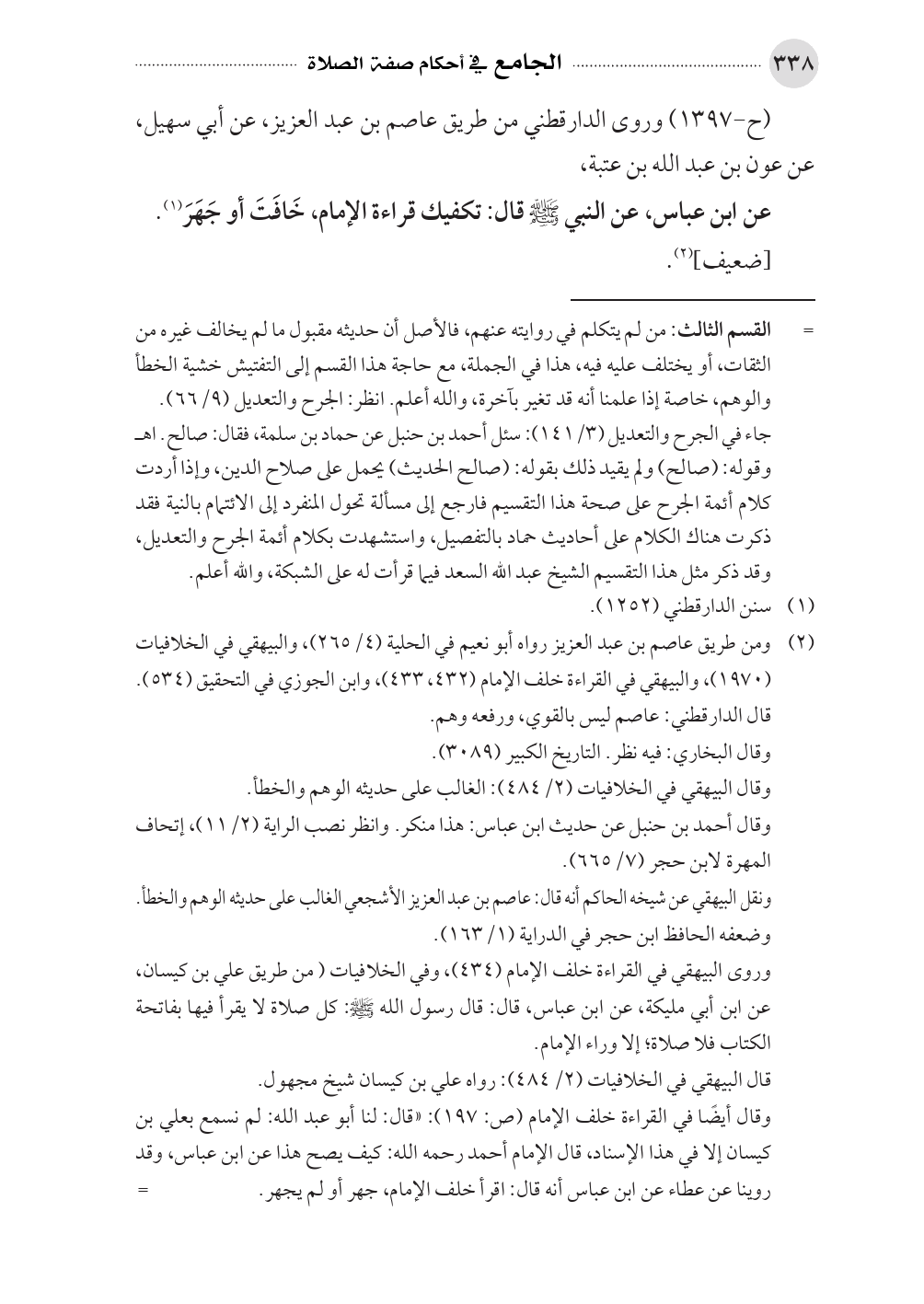 (ح-١٣٩٧) وروى الدارقطني من طريق عاصم بن عبد العزيز، عن أبي سهيل، عن عون بن عبد الله بن عتبة،