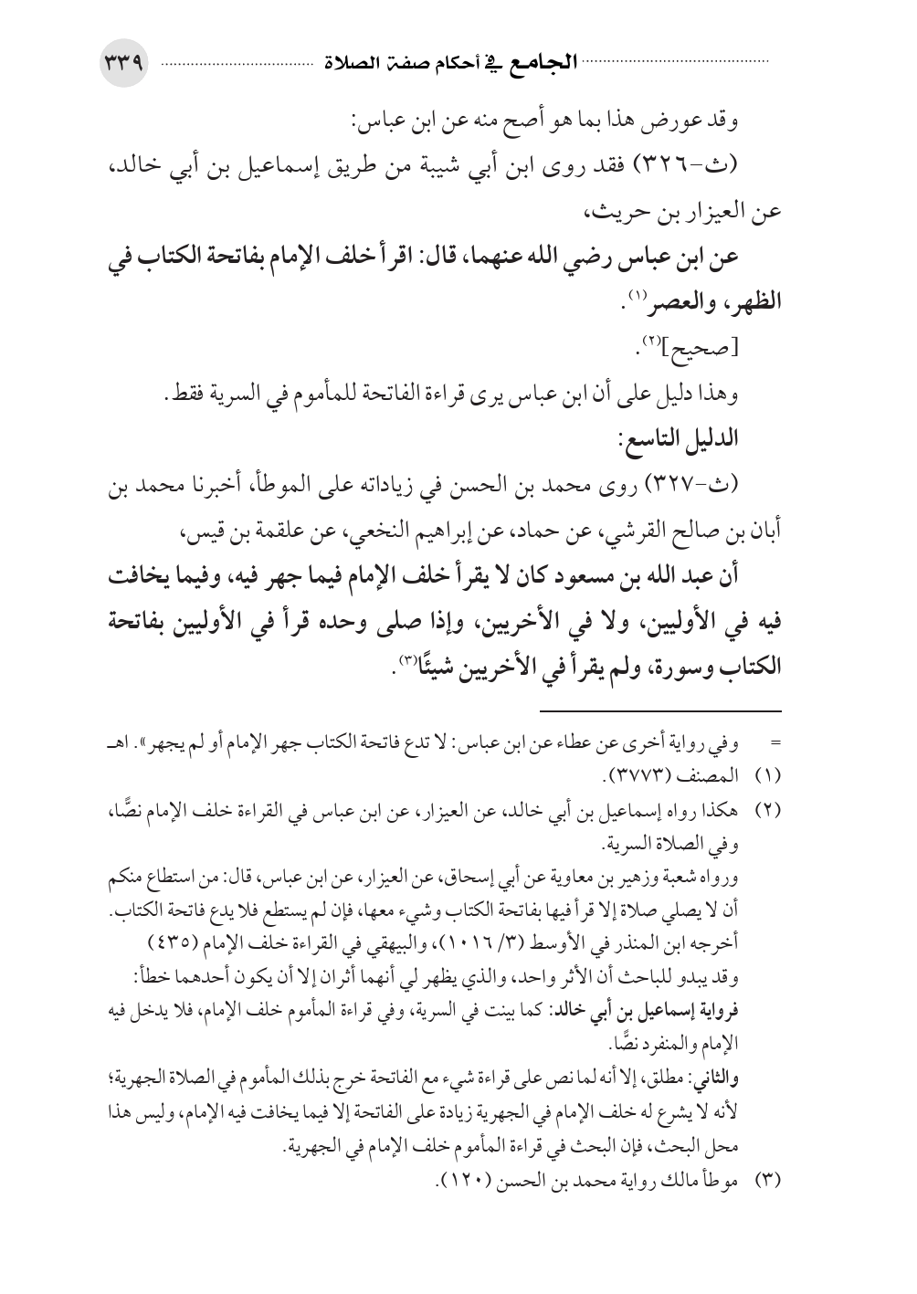 (¬٢). هكذا رواه إسماعيل بن أبي خالد، عن العيزار، عن ابن عباس في القراءة خلف الإمام نصًّا، وفي الصلاة السرية.