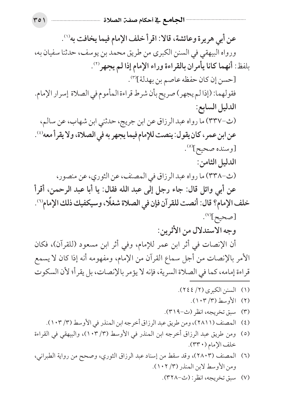 ورواه البيهقي في السنن الكبرى من طريق محمد بن يوسف، حدثنا سفيان به، بلفظ: أنهما كانا يأمران بالقراءة وراء الإمام إذا لم يجهر (¬٢).
