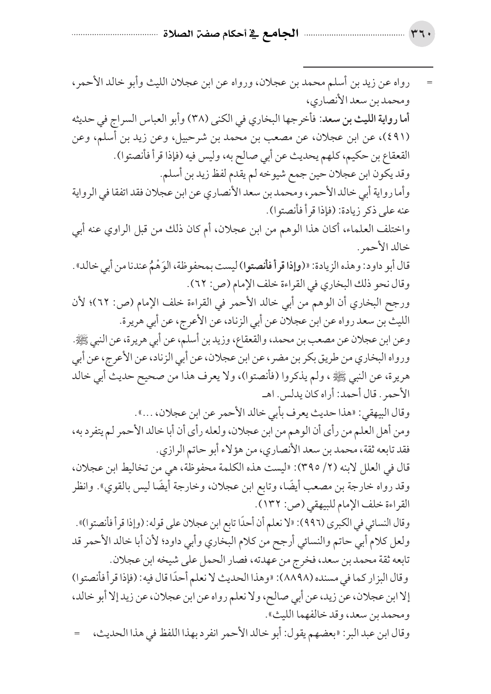 ورجح البخاري أن الوهم من أبي خالد الأحمر في القراءة خلف الإمام (ص: ٦٢)؛ لأن الليث بن سعد رواه عن ابن عجلان عن أبي الزناد، عن الأعرج، عن أبي هريرة.