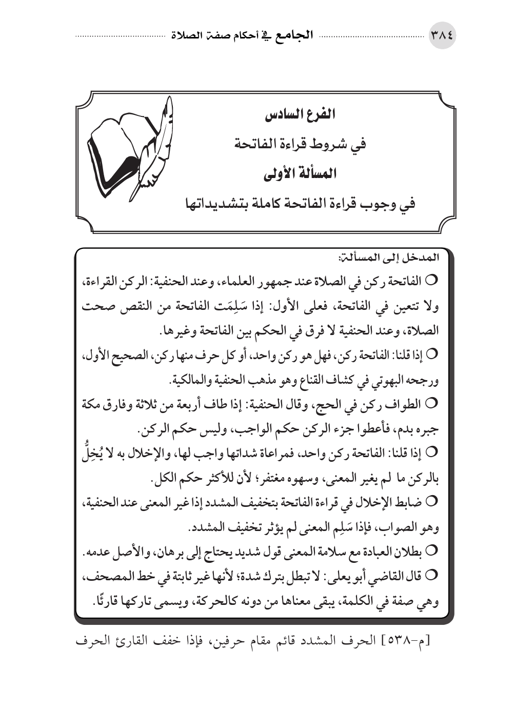 المسألة الأولى في وجوب قراءة الفاتحة بتشديداتها