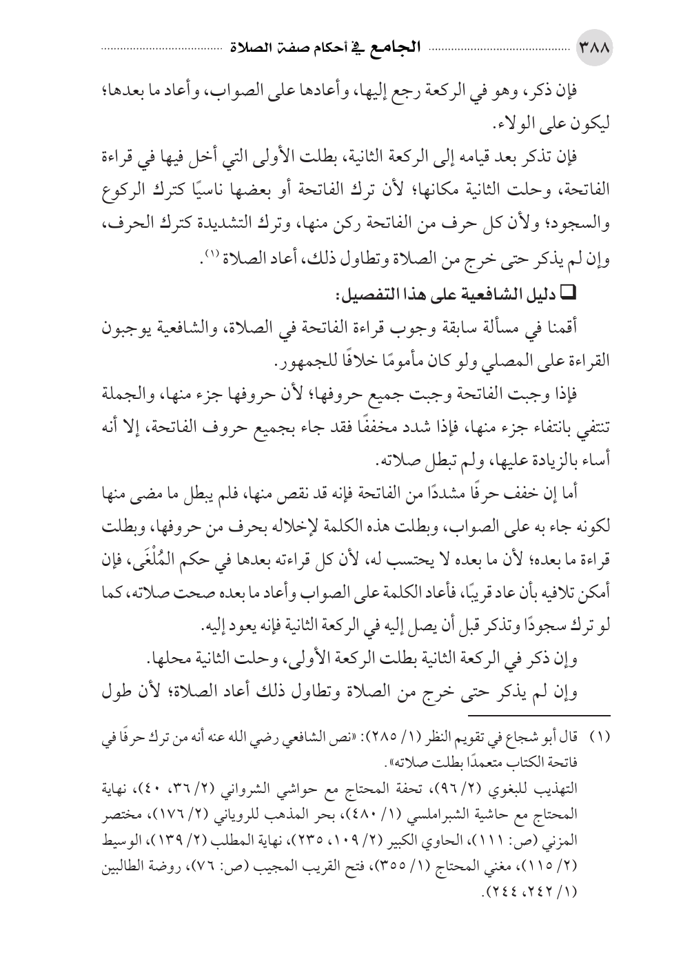 (¬١). قال أبو شجاع في تقويم النظر (١/ ٢٨٥): «نص الشافعي رضي الله عنه أنه من ترك حرفًا في فاتحة الكتاب متعمدًا بطلت صلاته».