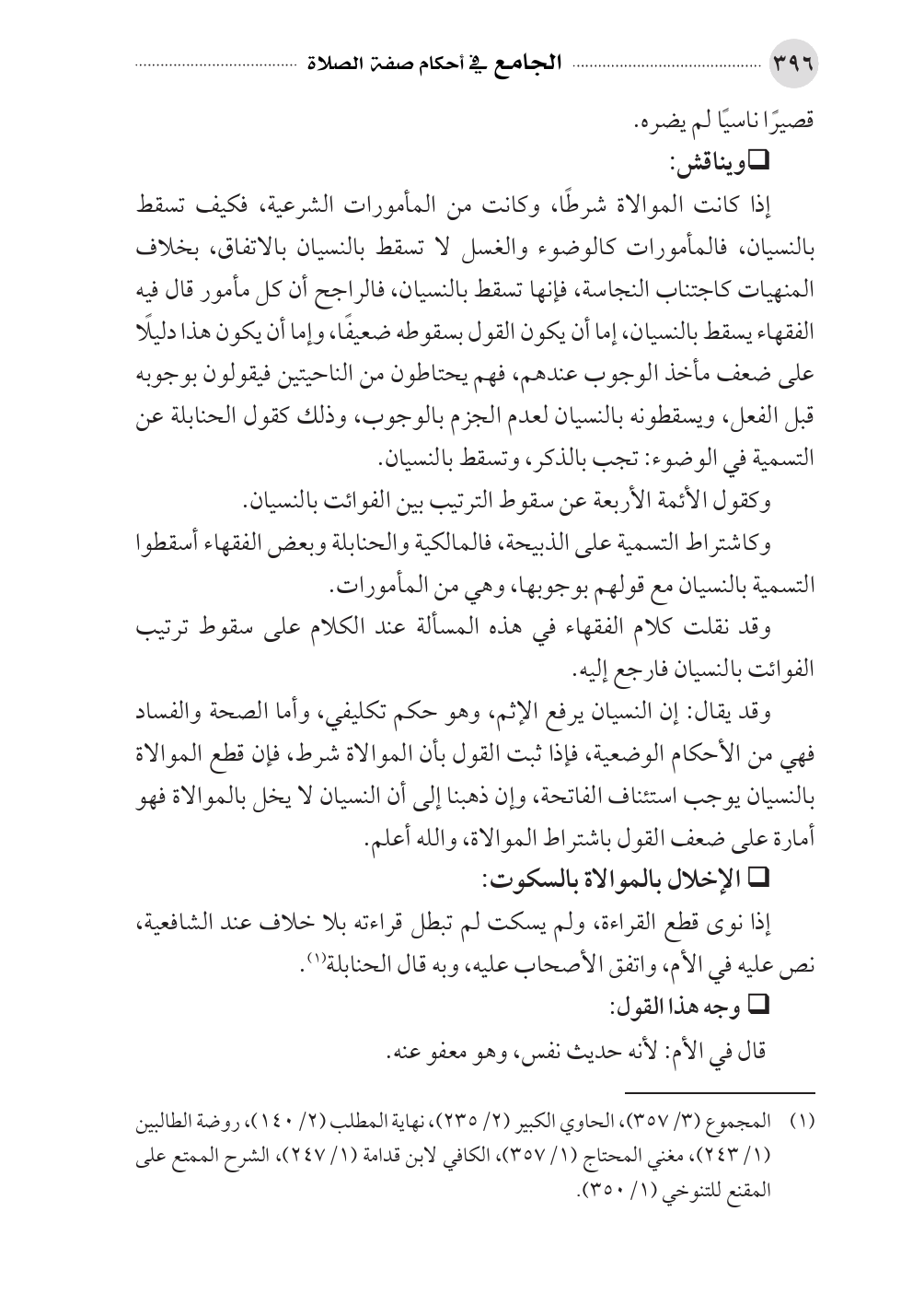 (¬١). المجموع (٣/ ٣٥٧)، الحاوي الكبير (٢/ ٢٣٥)، نهاية المطلب (٢/ ١٤٠)، روضة الطالبين (١/ ٢٤٣)، مغني المحتاج (١/ ٣٥٧)، الكافي لابن قدامة (١/ ٢٤٧)، الشرح الممتع على المقنع للتنوخي (١/ ٣٥٠).