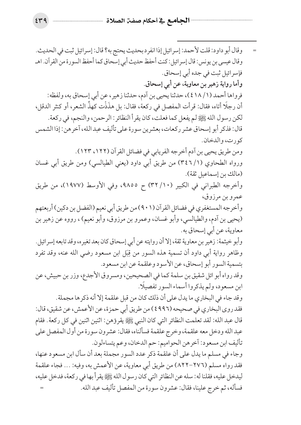 وأما رواية زهير بن معاوية، عن أبي إسحاق.
