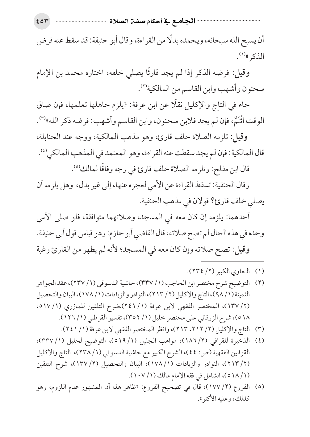 (¬٢). التوضيح شرح مختصر ابن الحاجب (١/ ٣٣٧)، حاشية الدسوقي (١/ ٢٣٧)، عقد الجواهر الثمينة (١/ ٩٨)، التاج والإكليل (٢/ ٢١٣)، النوادر والزيادات (١/ ١٧٨)، البيان والتحصيل (٢/ ١٣٧)، المختصر الفقهي لابن عرفة (١/ ٢٤١)،شرح التلقين للمازري (١/ ٥١٧، ٥١٨)، شرح الزرقاني على مختصر خليل (١/ ٣٥٢)، تفسير القرطبي (١/ ١٢٦).
