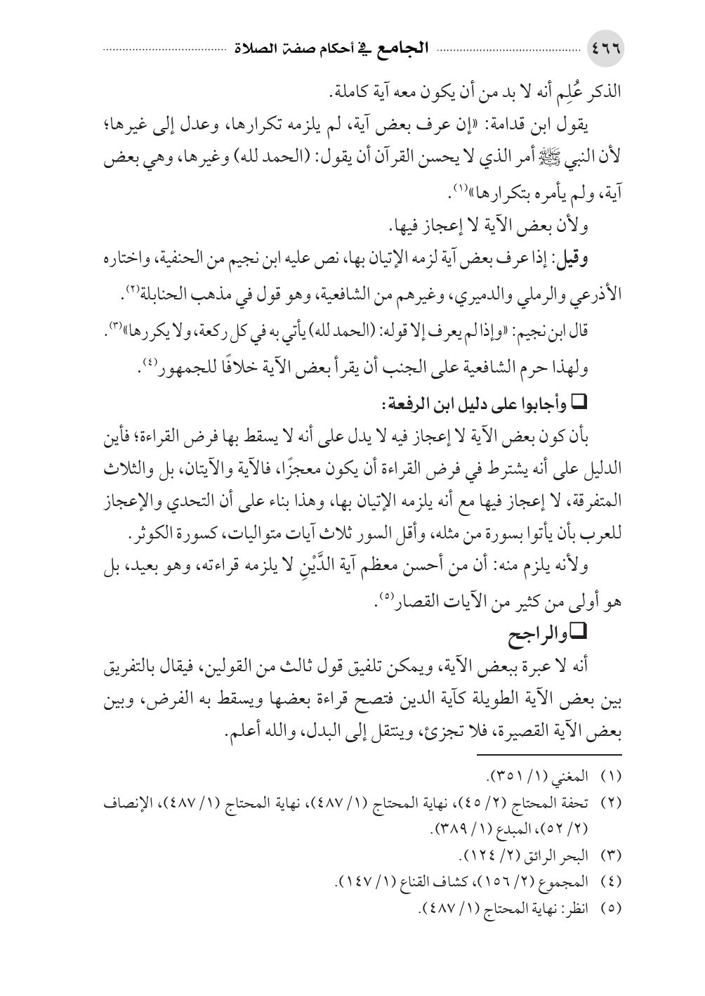 (¬٢). تحفة المحتاج (٢/ ٤٥)، نهاية المحتاج (١/ ٤٨٧)، نهاية المحتاج (١/ ٤٨٧)، الإنصاف (٢/ ٥٢)، المبدع (١/ ٣٨٩).