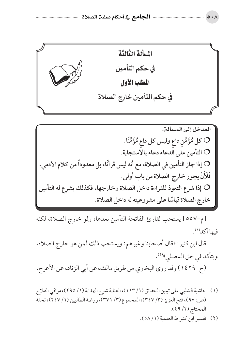 المطلب الأول في حكم التأمين خارج الصلاة