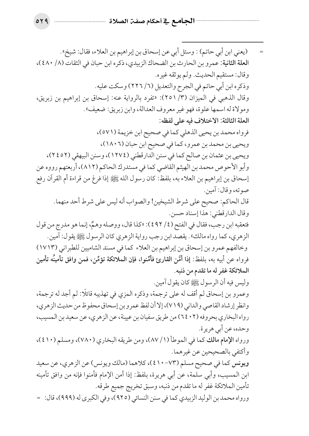 فتعقبه ابن رجب، فقال في الفتح (٤/ ٤٩٢): «كذا قال، ووصله وهمٌ، إنما هو مدرج من قول الزهري، كما رواه مالك». يقصد ابن رجب رواية الزهري كان الرسول صلى الله عليه وسلم يقول: آمين.
