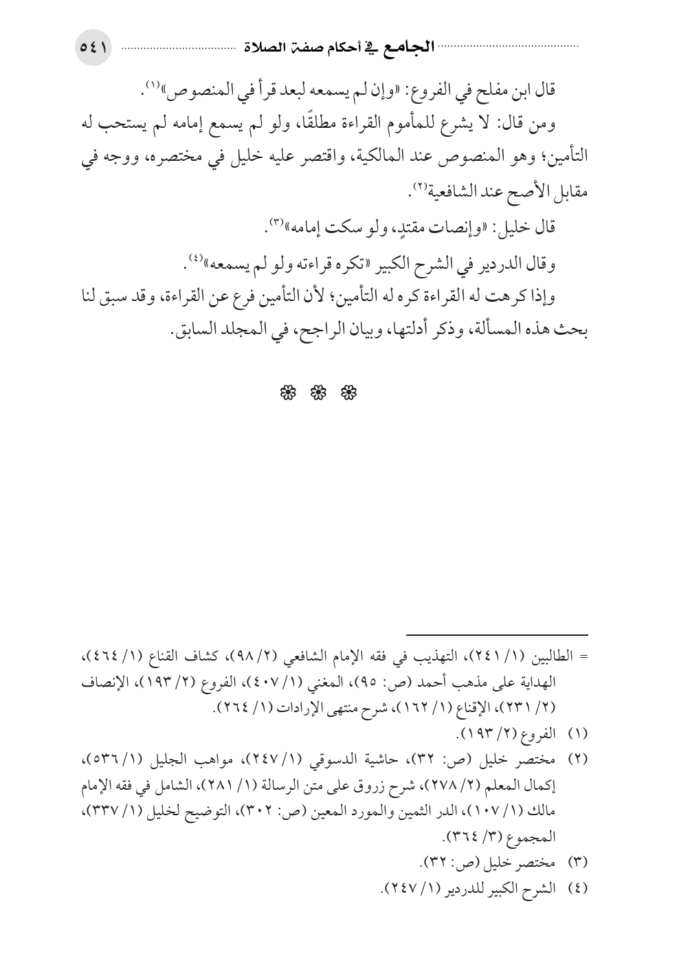 (¬٢). مختصر خليل (ص: ٣٢)، حاشية الدسوقي (١/ ٢٤٧)، مواهب الجليل (١/ ٥٣٦)، إكمال المعلم (٢/ ٢٧٨)، شرح زروق على متن الرسالة (١/ ٢٨١)، الشامل في فقه الإمام مالك (١/ ١٠٧)، الدر الثمين والمورد المعين (ص: ٣٠٢)، التوضيح لخليل (١/ ٣٣٧)، المجموع (٣/ ٣٦٤).