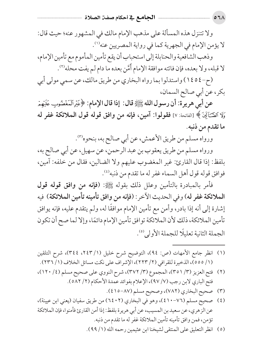 (¬٥). انظر التعليق على المنتقى لشيخنا ابن عثيمين رحمه الله (١/ ٩٩).