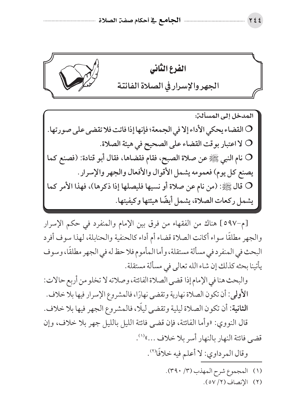 الفرع الثاني في الإسرار في الصلاة الفائتة