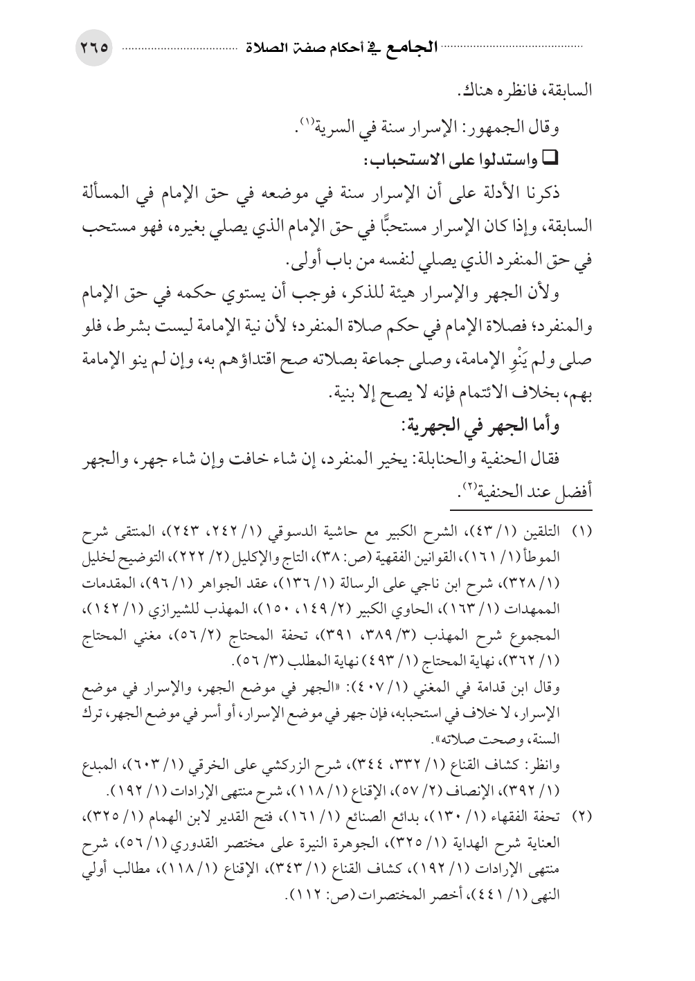 وانظر: كشاف القناع (١/ ٣٣٢، ٣٤٤)، شرح الزركشي على الخرقي (١/ ٦٠٣)، المبدع (١/ ٣٩٢)، الإنصاف (٢/ ٥٧)، الإقناع (١/ ١١٨)، شرح منتهى الإرادات (١/ ١٩٢).