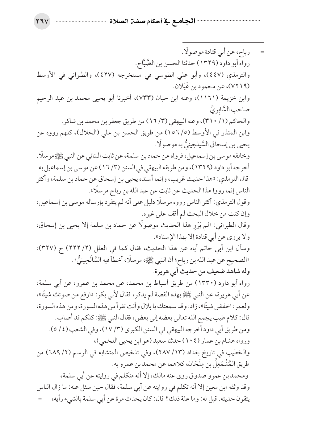 قال الترمذي: «هذا حديث غريب، وإنما أسنده يحيى بن إسحاق عن حماد بن سلمة، وأكثر الناس إنما رووا هذا الحديث عن ثابت عن عبد الله بن رباح مرسلًا».