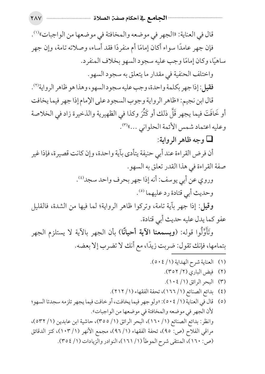 (¬٥). قال في العناية (١/ ٥٠٤): «ولو جهر فيما يخافت، أو خافت فيما يجهر تلزمه سجدتا السهو؛ لأن الجهر في موضعه والمخافتة في موضعها من الواجبات».